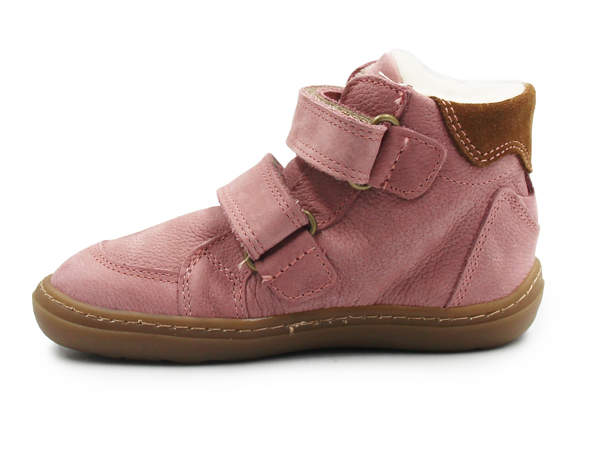 Dziecięce buty zapinane za pomocą praktycznych rzepów, które umożliwiają dopasowanie do szerokości stopy dziecka. Podeszwa nie ogranicza ruchomości stopy, dzięki temu, że jest elastyczna. Wnętrze ocieplone jest miękkim kożuszkiem.