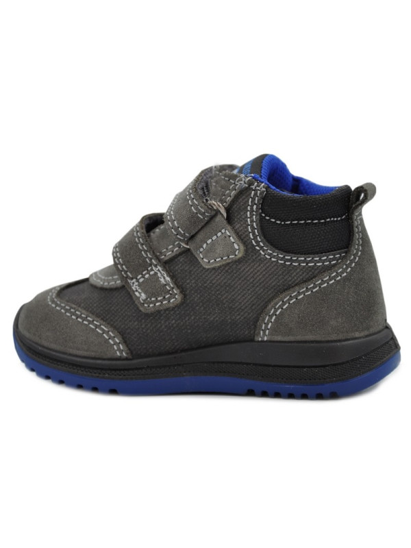 Jesienno - wiosenne buciki dla chłopca. Wykonane z połączenia skóry nubukowej i materiału tekstylnego.