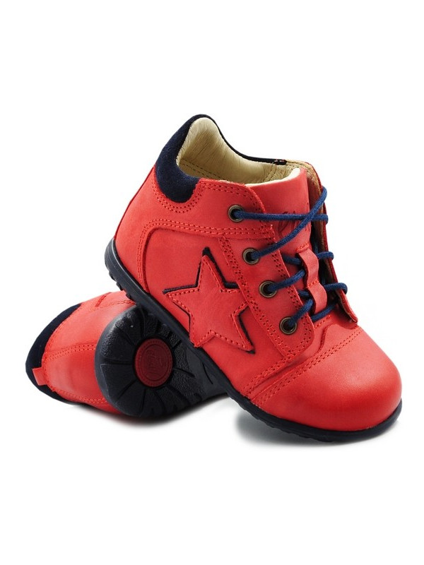 Trzewiki Emel e 2069d-5 to profilaktyczne buty przeznaczone dla dzieci które zaczynają swoją przygodę z chodzeniem. Kolor czerwony z gwiazdką spodoba się każdemu chłopcu.