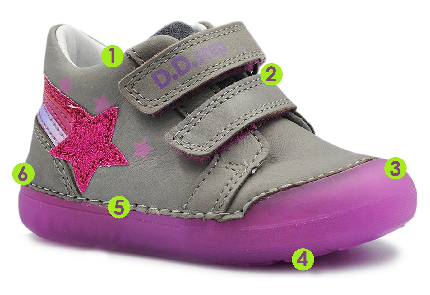 Najważniejsze jest to, żeby dziecko mogło swobodnie ruszać palcami, a but nie krępował ruchu. Takie obuwie pomaga uczyć się chodzenia bez ograniczeń.
