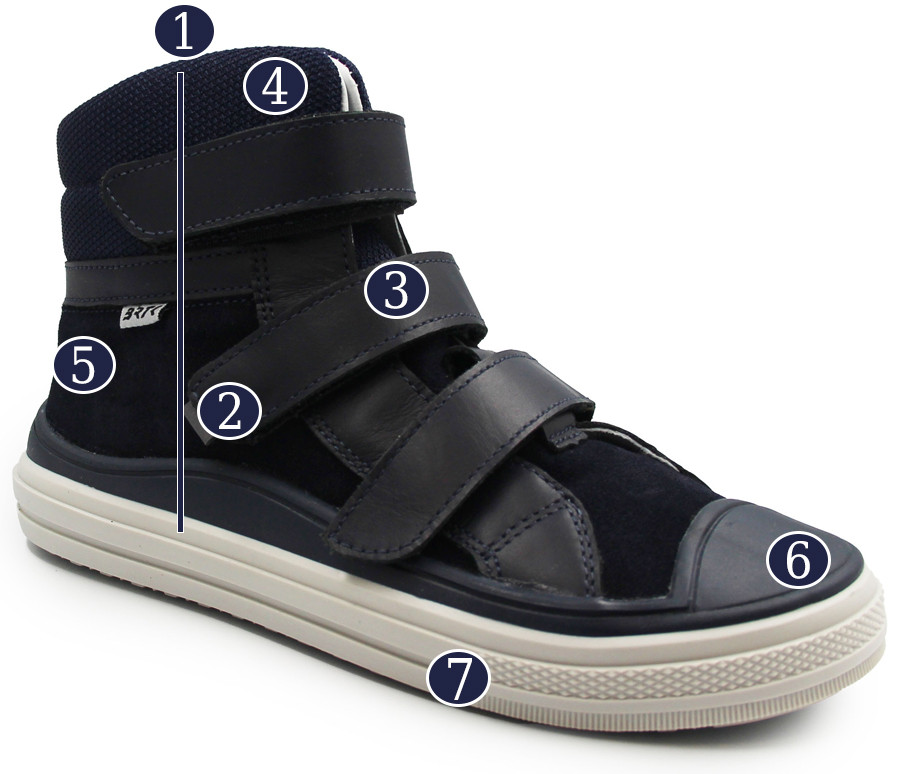 4. Sznurówki lub rzepy sięgające daleko w kierunku czubka.