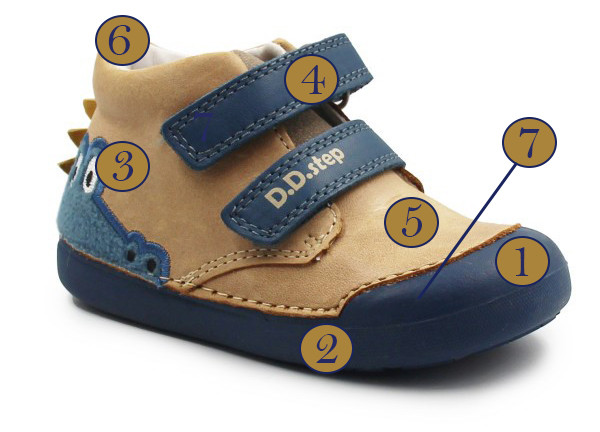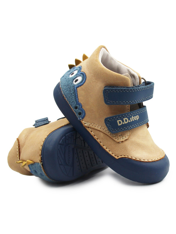 Urocze trzewiki D.D.step z niebieskim krokodylkiem są idealne dla maluchów, które stawiają pierwsze kroki. Wykonane w całości ze skóry, wyposażone w skórzaną, wyjmowaną wkładkę, zapewniają komfort i wsparcie. Dzięki regulacji na rzepy, łatwo je dopasować do stopy dziecka, a hydrofobowa i antypoślizgowa podeszwa z naturalnego kauczuku chroni przed wilgocią i zapobiegają poślizgnięciu się.