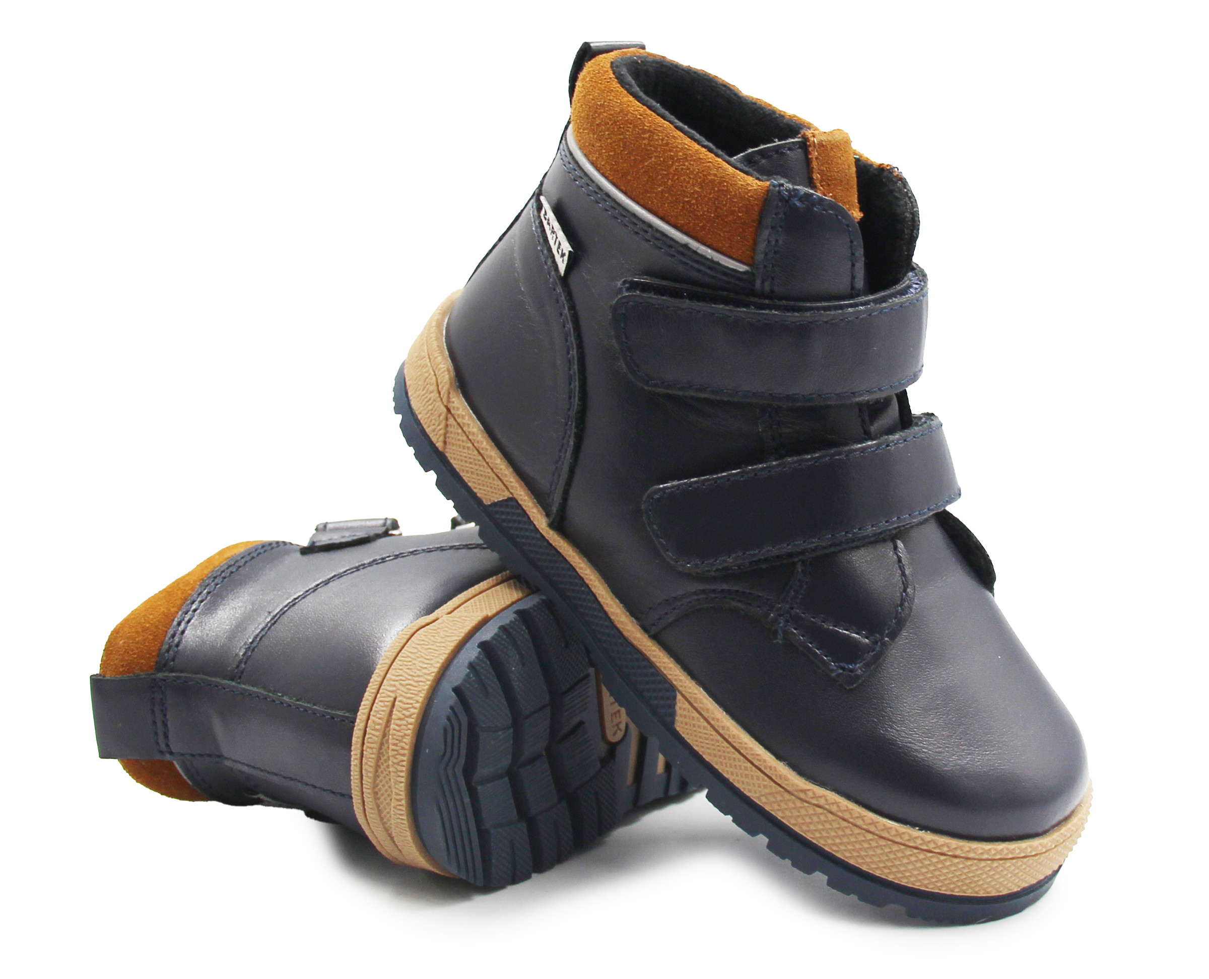 Granatowe trzewiki posiadają praktyczne zapięcie na dwa rzepy, które pozwala dziecku samodzielnie je zakładać i zdejmować. Dzięki temu dopasowanie do stopy jest szybkie i wygodne, a maluch może cieszyć się swobodą w każdej sytuacji.
