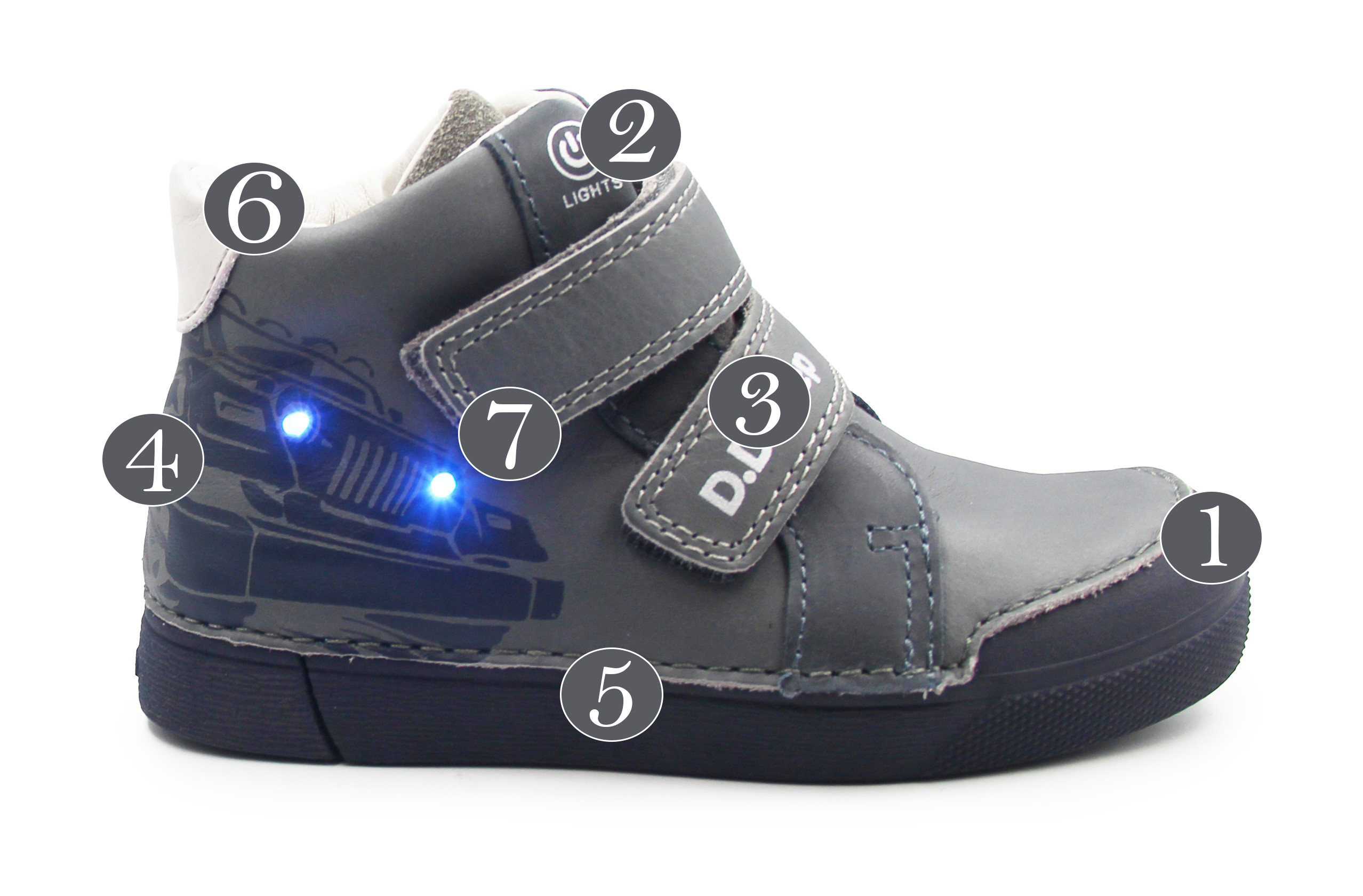 Buty DD STEP z podświetleniem LED to nie tylko funkcjonalne obuwie dla dzieci, ale także prawdziwa atrakcja dla najmłodszych. Dzięki wbudowanym diodom LED, buty świecą w ciemności, co sprawia, że każdy krok staje się magicznym doświadczeniem.