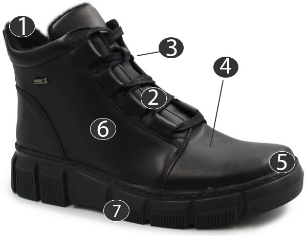 Podeszwa botków jest podwyższona szczególnie w okolicach pięty, dzięki czemu amortyzacja wstrząsów od podłoża na jakie narażone są stopy, jest znacznie bardziej odczuwalna. Wnętrze ocieplone jest miękkim materiałem, w celu zapewnienia stopom komfortu podczas chłodniejszych temperatur. Wykonane w klasycznym kolorze, co sprawia że może uzupełnić zimowe stylizacje zarówno te eleganckie jak i na co dzień.