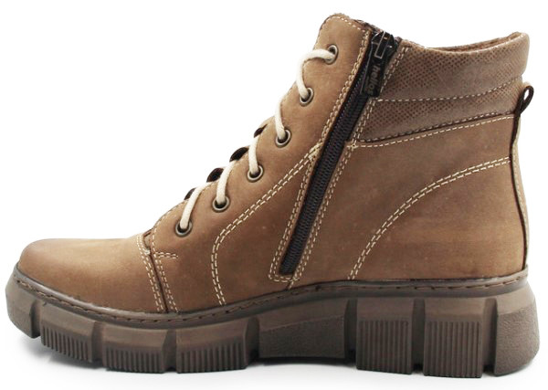 Ocieplane buty damskie, wykonane z wysokiej jakości skóry naturalnej. Zapinane za pomocą zamka błyskawicznego, a dodatkowo wyposażone w sznurowała, co pozwala na indywidualne dopasowanie obuwia do stopy.
