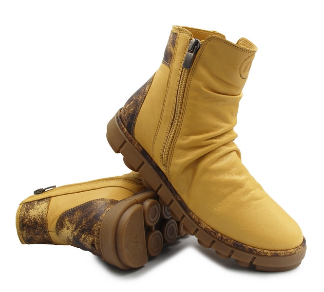 Buty damskie na jesień zimę ze skóry naturalnej Manitu 990678-06 gelb