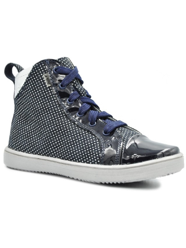 Dziewczęce efektowne trampki polskiej firmy Bartek model W-94359/SZ/1H7 w kolorze granatowym.