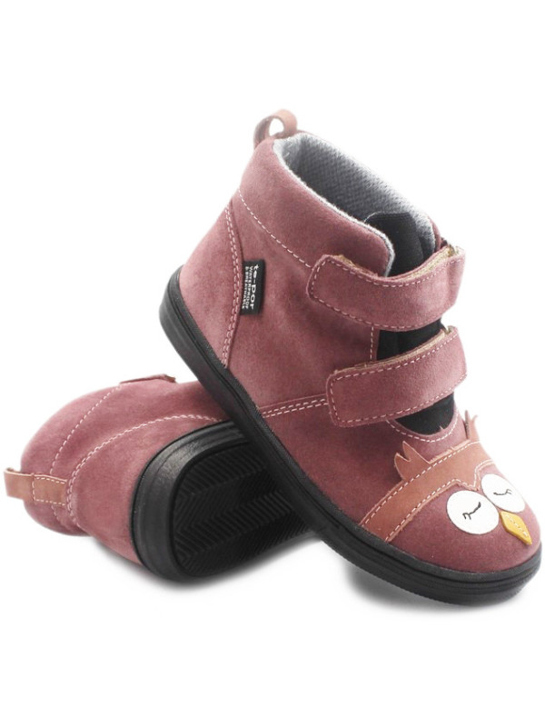 Buty dla dziewczynki ocieplane MIDO Sowa Nubuk Rzepy 22-20 Róż