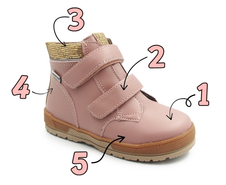 1. Naturalna skóra licowa - cholewka wykonana z wysokogatunkowej skóry, miękkiej i przyjaznej dla dziecięcej skóry