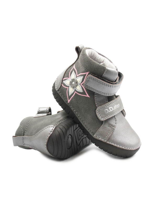 Buty Dziewczęce Na Wiosnę z Kwiatuszkiem DD STEP A050-52429BM Grey