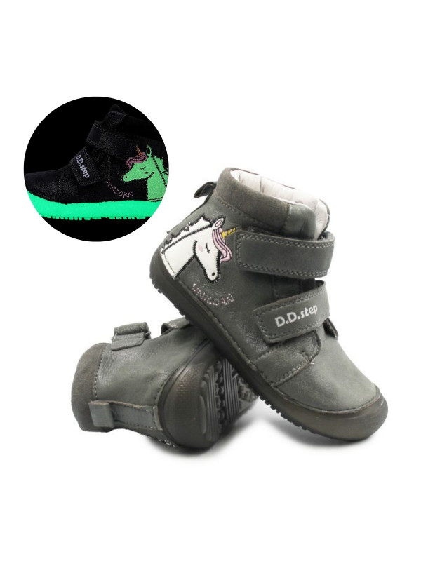 Buty Dziewczęce Na Wiosnę z Jednorożcem Świecące w Ciemności BAREFOOT DD STEP A063-52815M Dark Grey