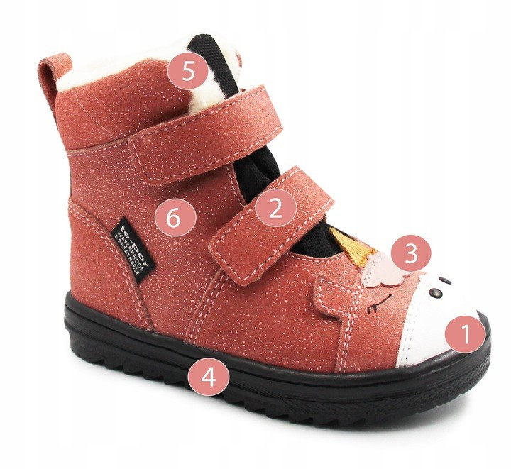 ❄️ Buty bardzo łatwo się zakłada, dzięki regulowanym rzepom, można buciki dopasować do indywidualnych preferencji dziecka a odpowiednia wysokość butów oraz sztywniejsza część w okolicy pięty, ułatwia utrzymanie stopy dziecka w odpowiednim ułożeniu