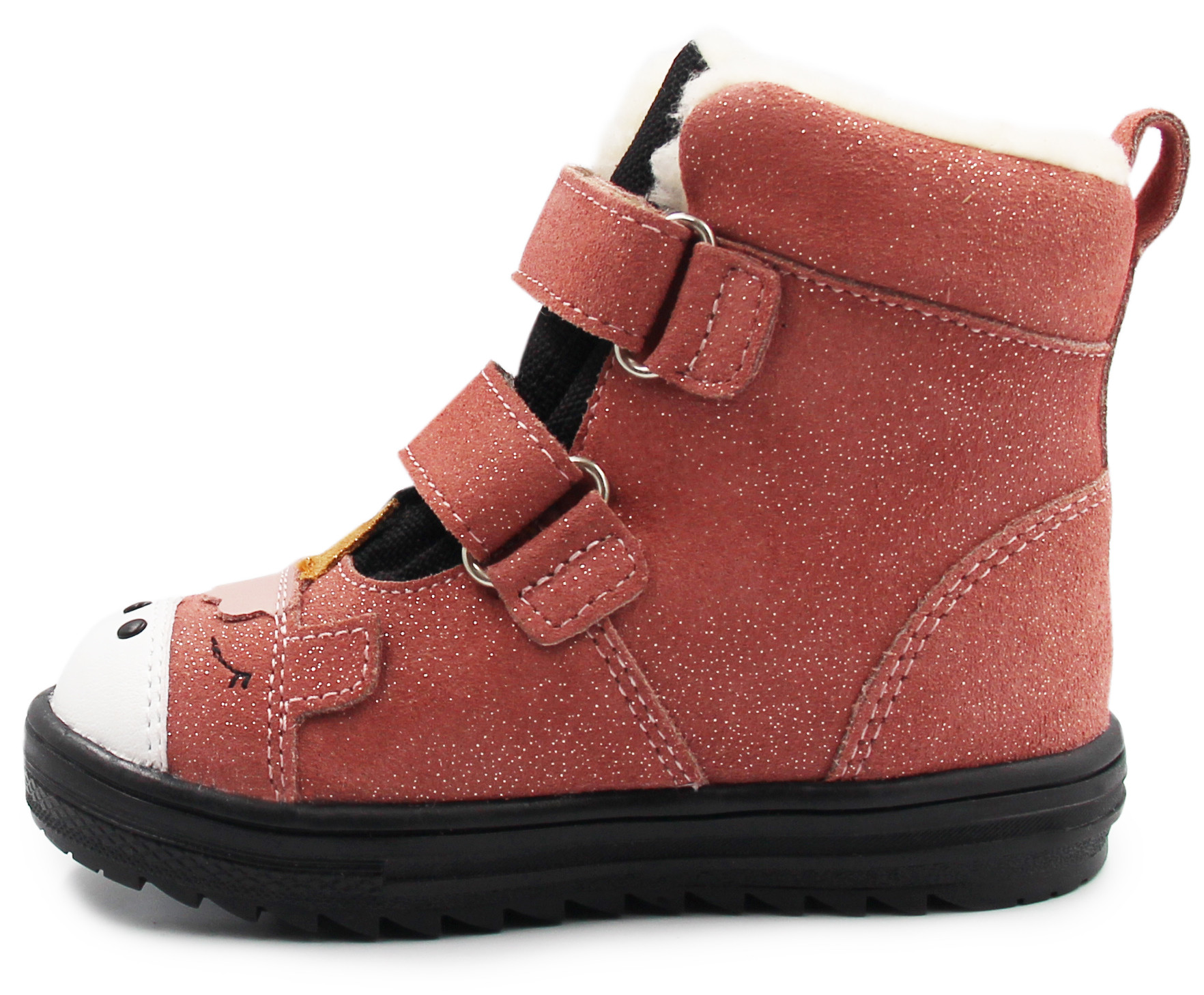 ❄️ Buty bardzo łatwo się zakłada, dzięki regulowanym rzepom, można buciki dopasować do indywidualnych preferencji dziecka a odpowiednia wysokość butów oraz sztywniejsza część w okolicy pięty, ułatwia utrzymanie stopy dziecka w odpowiednim ułożeniu