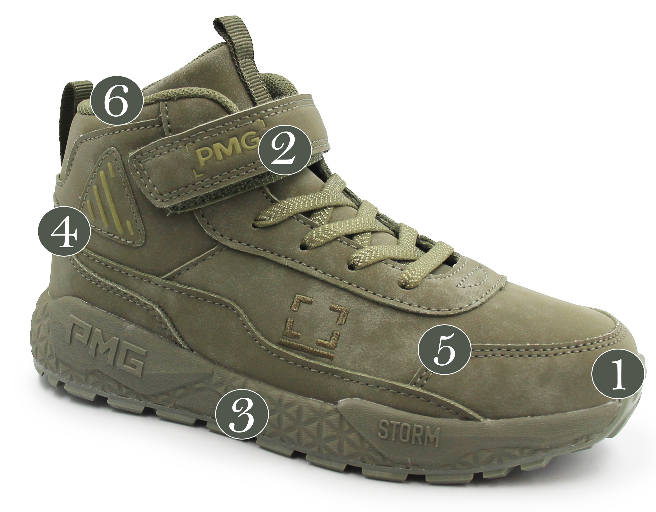System amortyzacji wstrząsów. Jej głównym zadaniem jest niwelowanie drgań podczas chodzenia, biegania i skakania. Nie uciska nóg od spodu, zapewniając komfort noszenia.