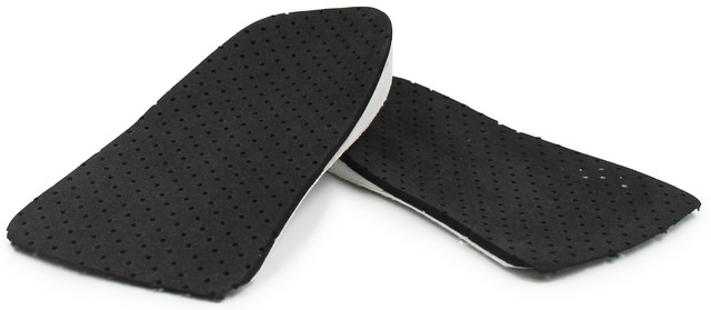 Wkładki "Correct S" posiadają wklejony specjalny klin korygujący, z podniesieniem po wewnętrznej strony (1). Tak by zmusić stopy do korekcji, a co za tym idzie całe kończyny dolne do prawidłowej postawy ciała. Dodatkowo klin zapobiega pogłębianiu się wady.
