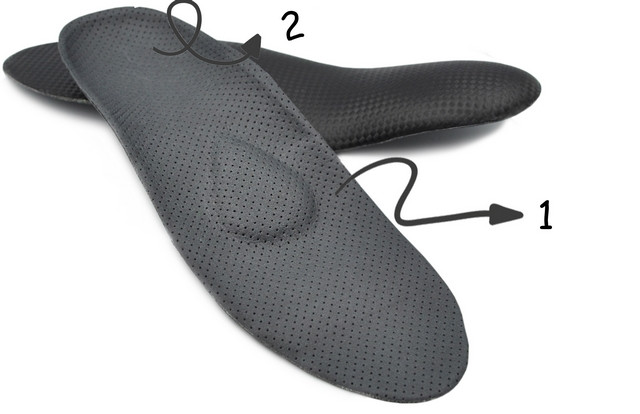 - Dodatkowo wkładki Comfort Plus Reduce T wyścielone są miękkim materiałem na tyłostopiu (2), w celu odciążenia mocno przeciążonych struktur w okolicy pięty.